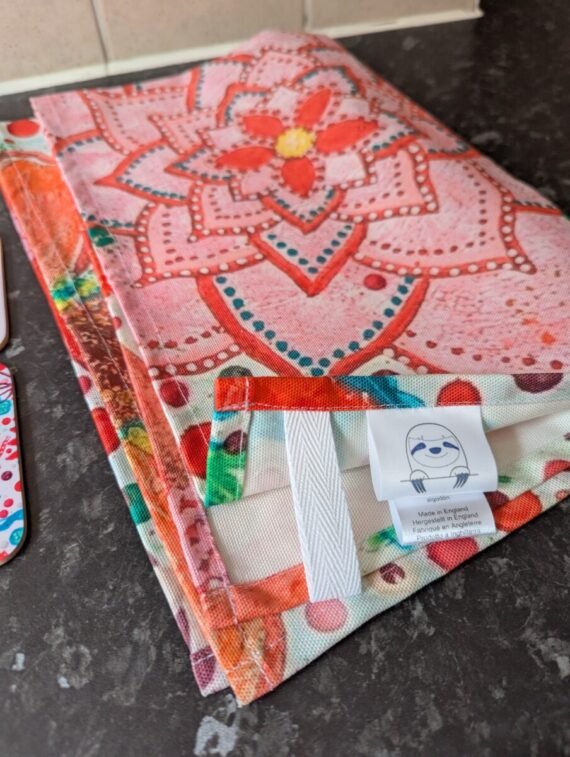 Navy Sloth’s Wildflower Ruby Heart tea towel — bold ruby florals printed on soft cotton. A heartfelt gift for anniversaries, weddings, or everyday joy.